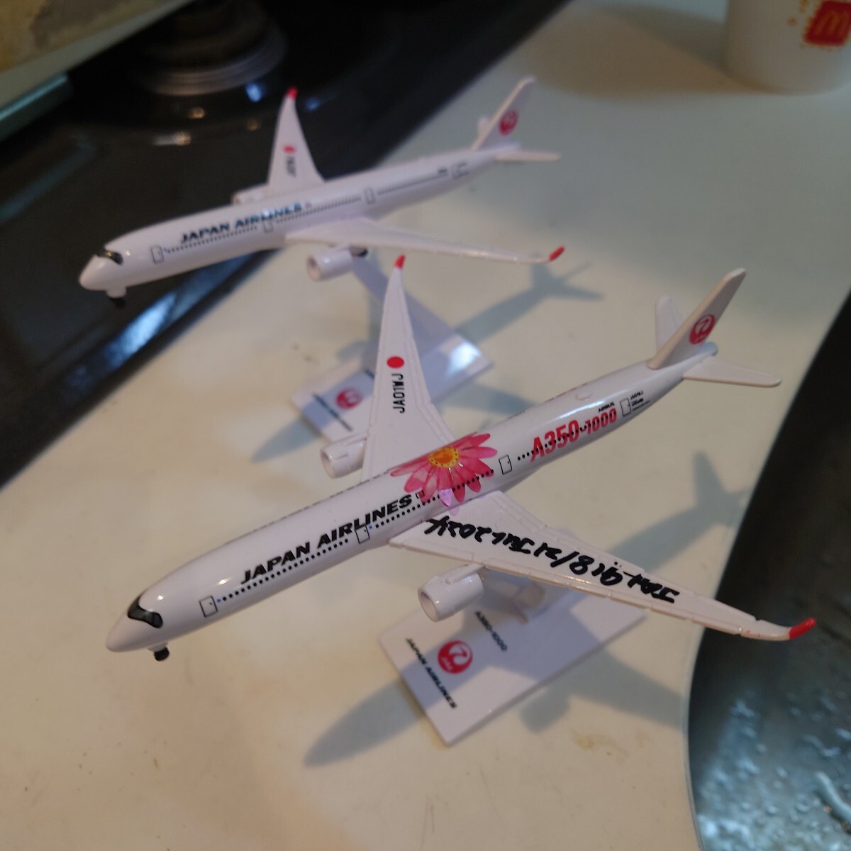 - JAL ジェット機 2機!スタッフサイン入り 台座付き!