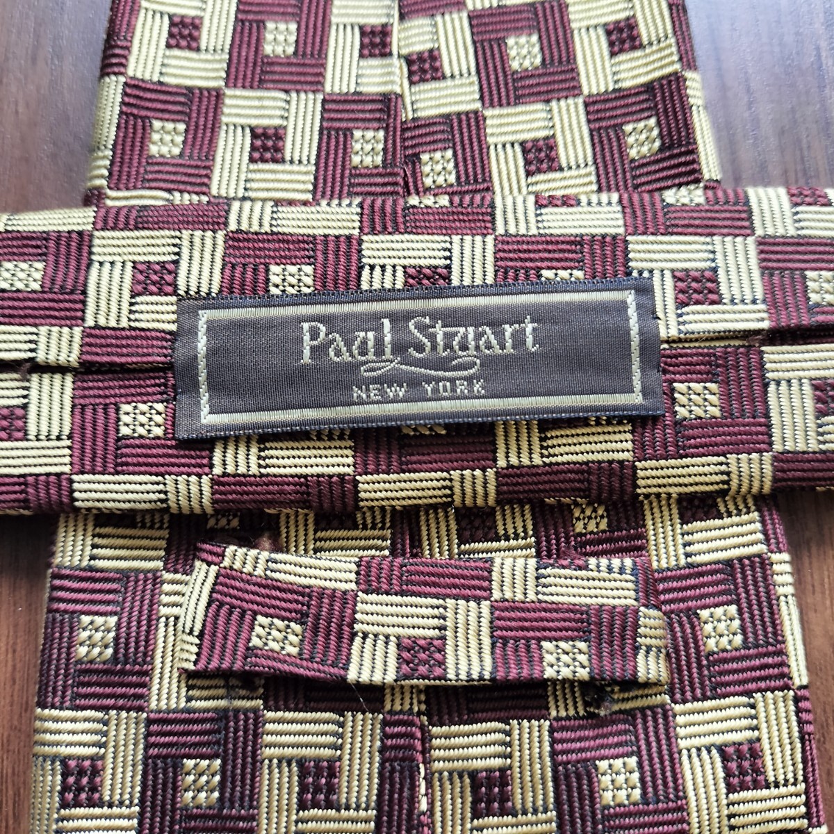 - Paul Stuart( ポールスチュアート)ボルドーゴールドスクエア四角ネクタイ