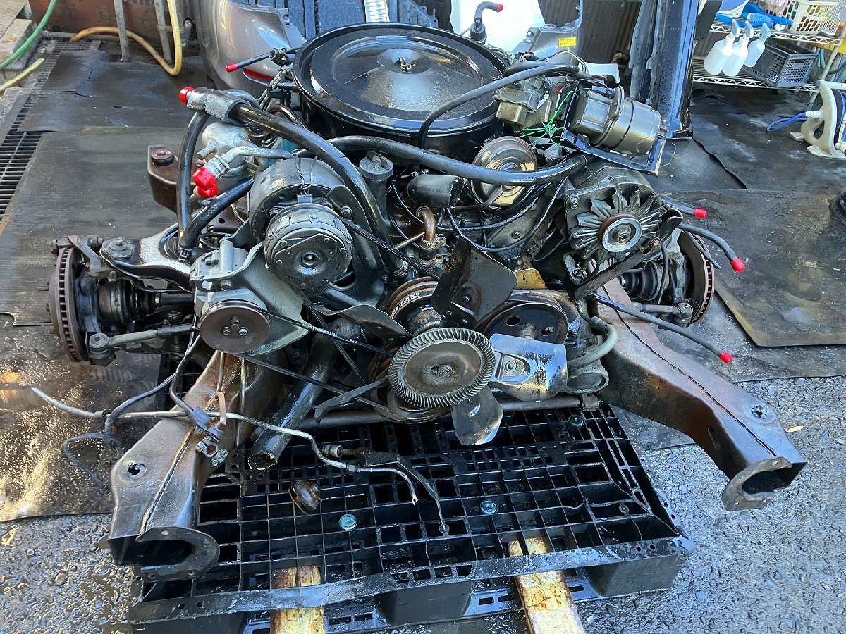 ※引取限定商品になります。パレットに積んであります。※詳しい事は全くわかりませんので画像でわかる方のみでご検討下さい。鈑金屋が直して起こす予定だったみたいですが、辞めたまま放置されていた車両外しです。■エンジン型式:不明 3A 554 GMD と刻印が有ります。