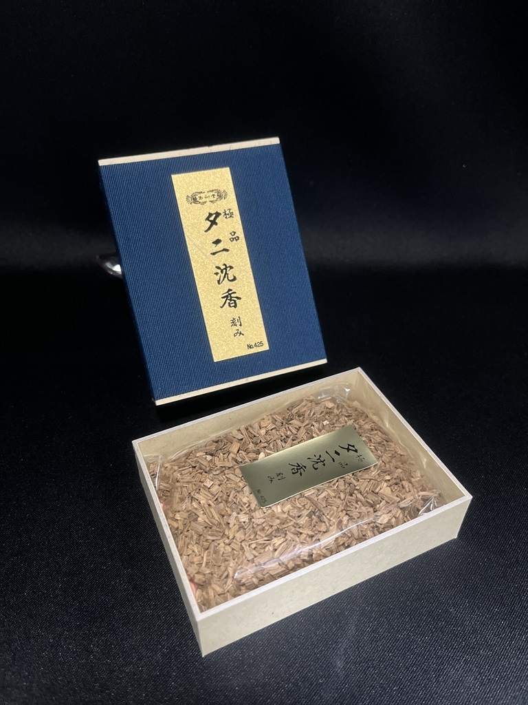 - 川本仏壇店/玉初堂製「極品 タニ沈香 刻み 内容量約15g」化粧箱入 焼香用 お香/薫香 法事 法要 茶道具/川本仏