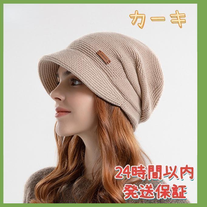 - ニット帽 レディース 裏起毛 防寒 保温 小顔効果 柔らかい 通気性抜群 カーキ