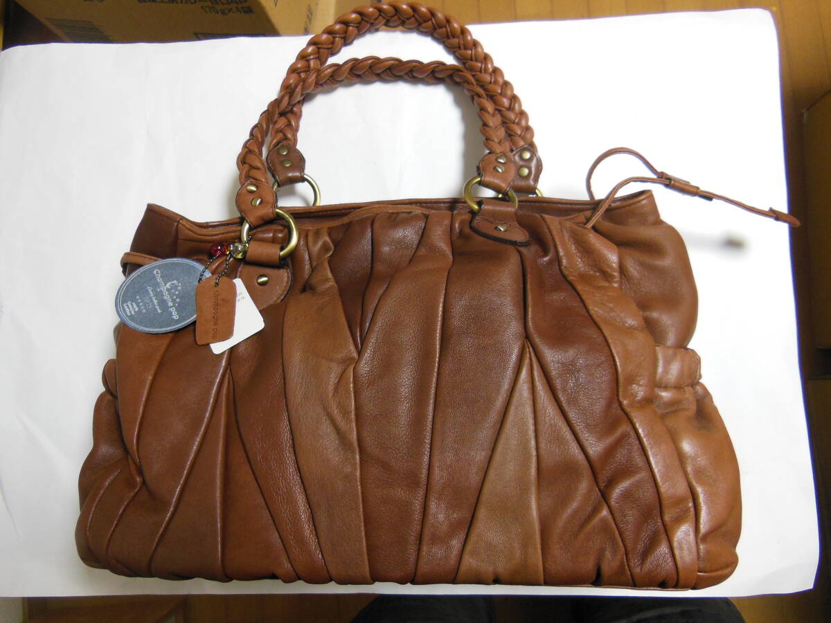 - 未使用品 CHAMPAGNE POP シャパンポップ レディーストートバッグ・タグ付き 本革 ブラウン 送料無料