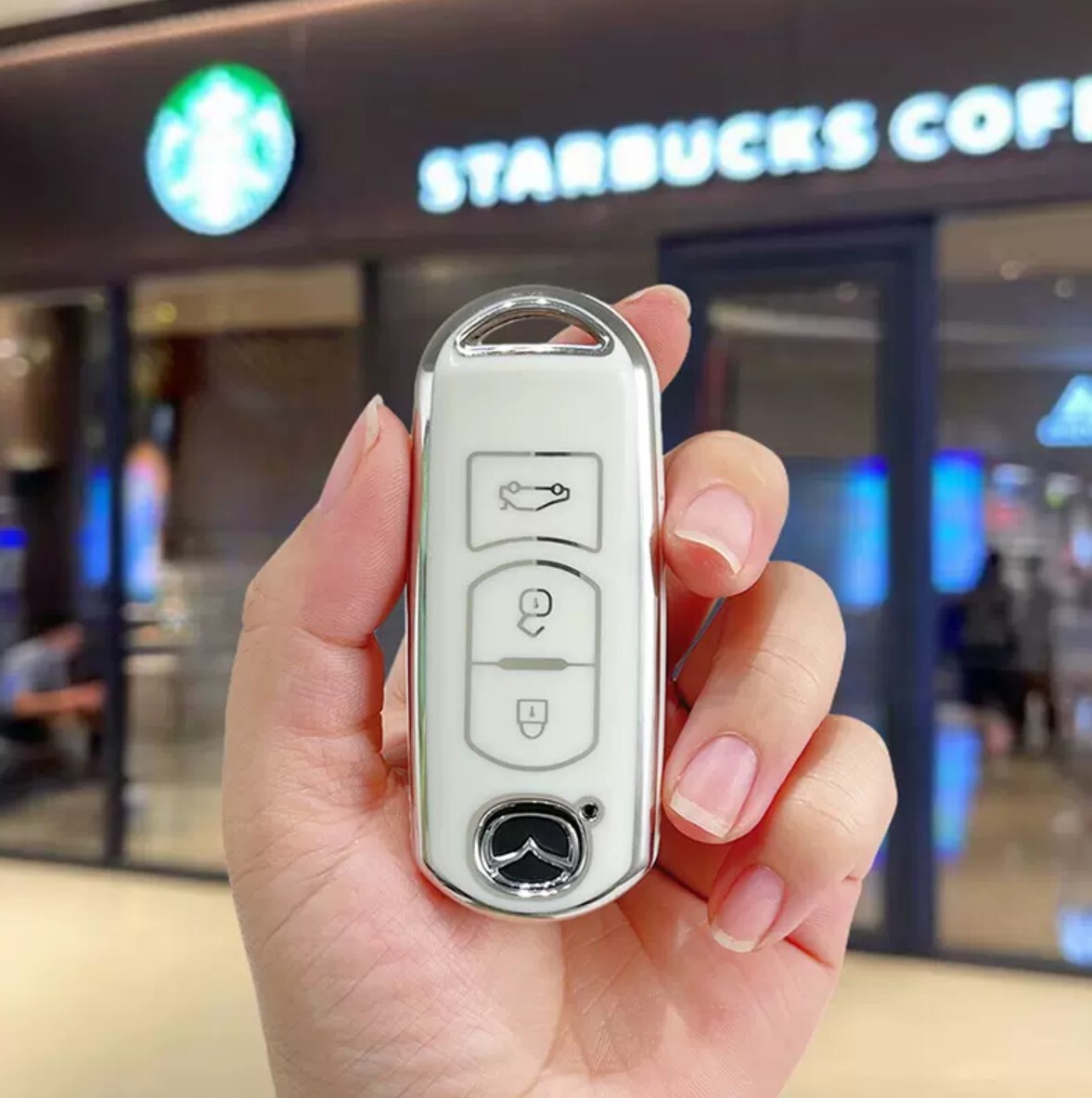 > マツダ スマートキーケース TPU キーカバー CX-5/3 デミオ アテンザ ホワイト×シルバー3