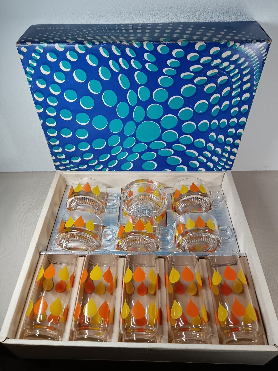 > 昭和 レトロ HOYA GS315-04 ジュースアイスティーセット 10オンスタンブラー ガラス小箱 アイスティーカップ しずく柄 グラス