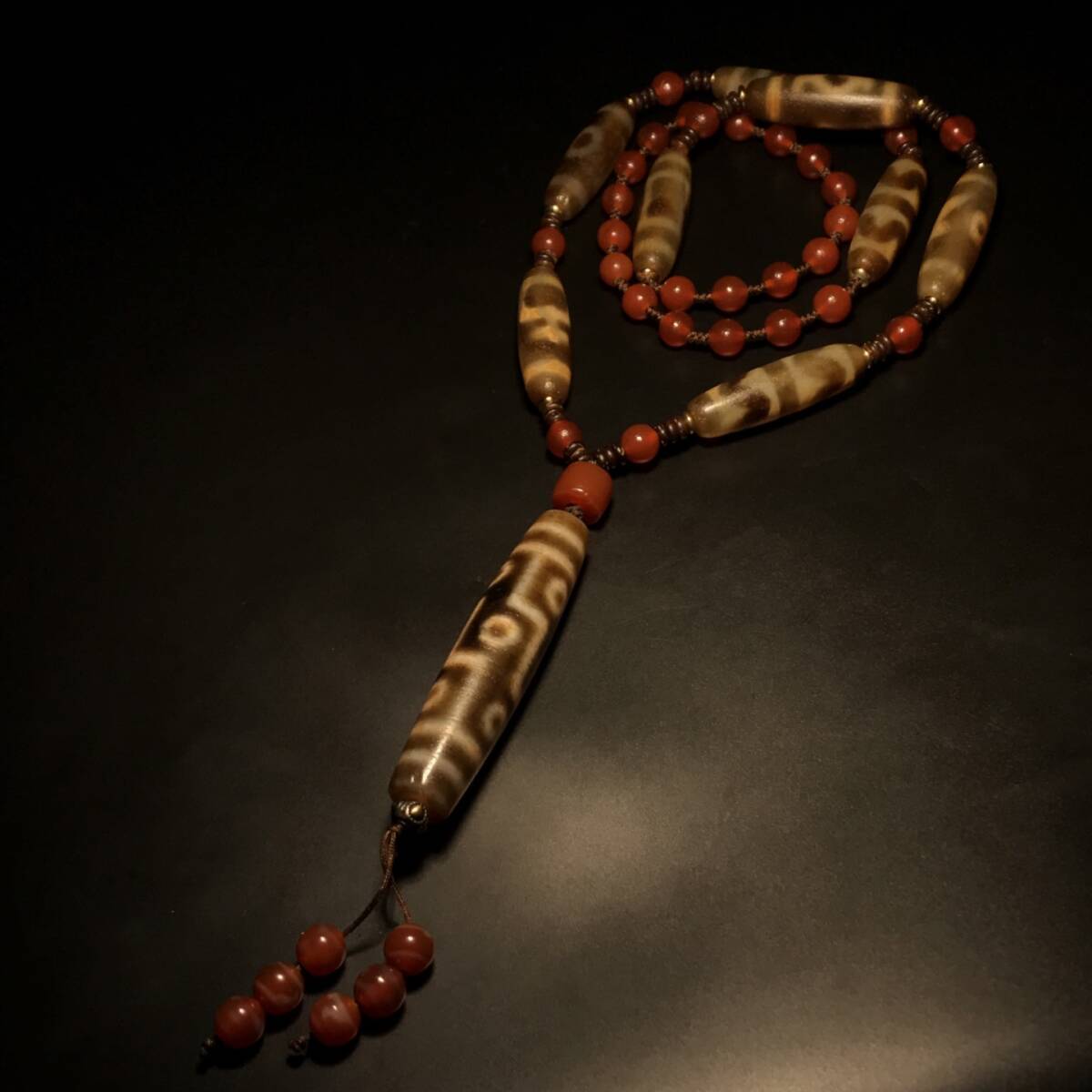 - 『清・古牙黄九眼天珠・風化紋・馬蹄痕・箱付・』極細工・骨董品・古賞物・中国古玩・中国古美術