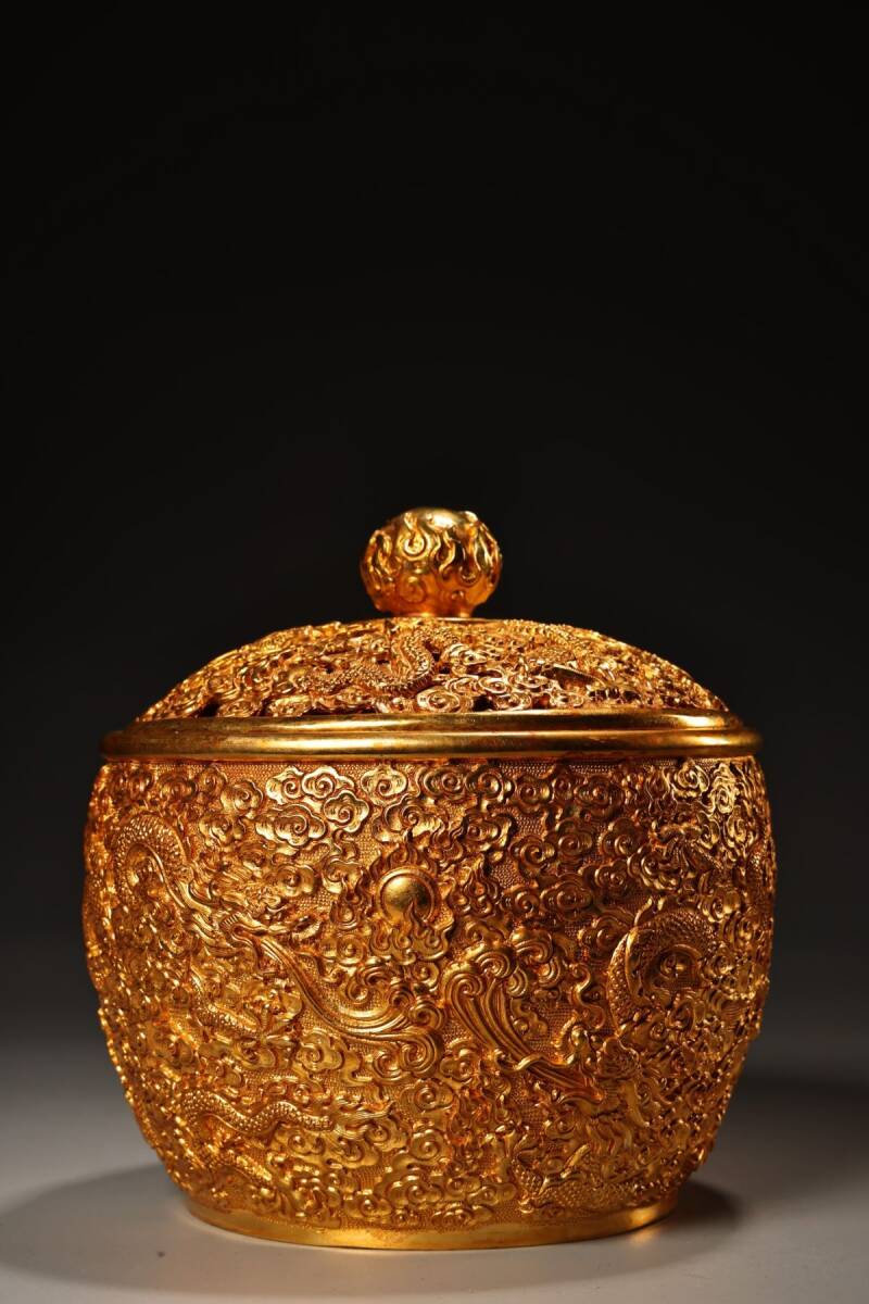 - 永し 清時代 乾隆年製 古銅塗金 盤龍罐 極細工 古銅彫 置物擺件 古美術品 時代物 古董品 収集 旧家蔵出 中国唐物 A2874