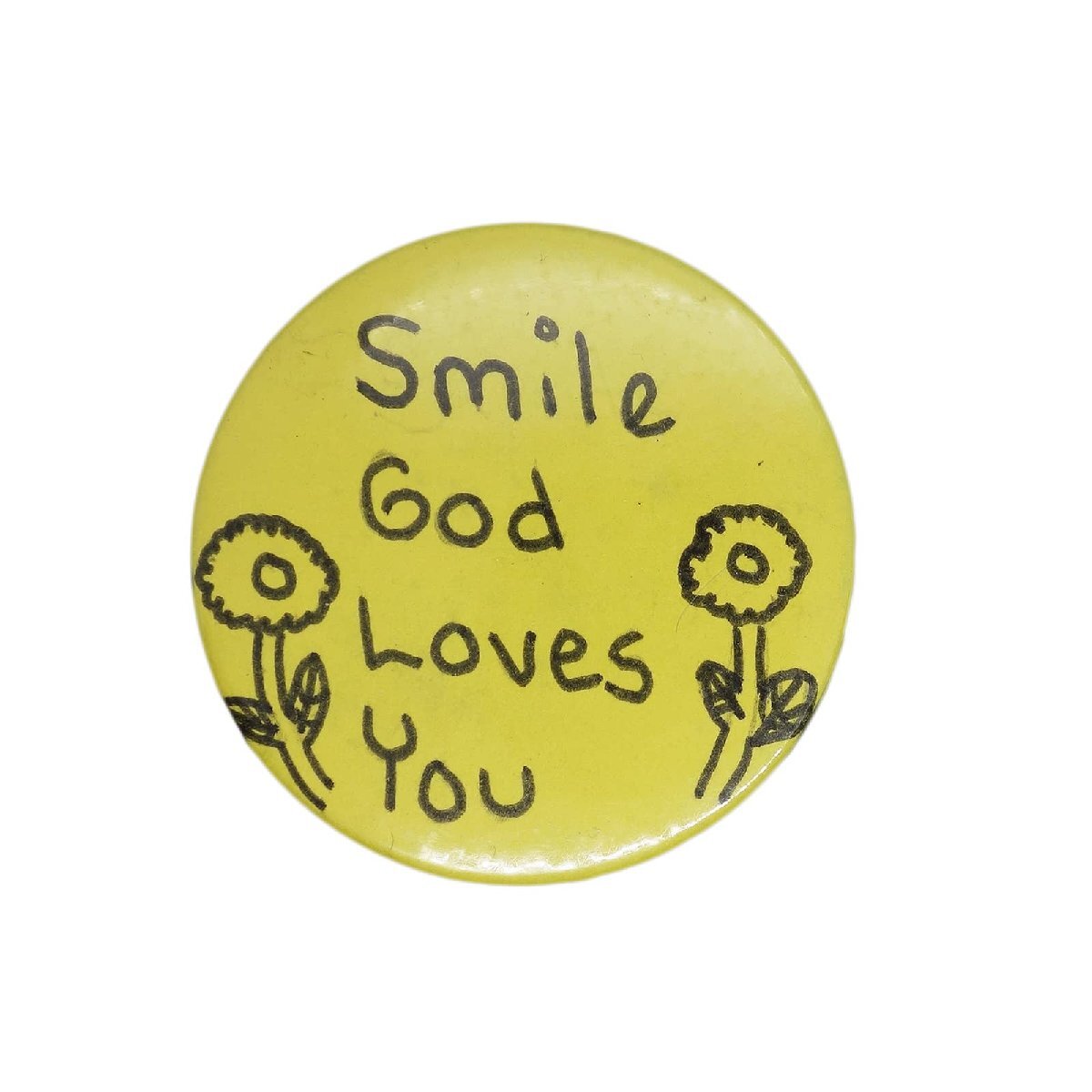 - Smile God Loves You レトロ 缶バッジ ピンバッジ アメリカ輸入雑貨 缶バッチ