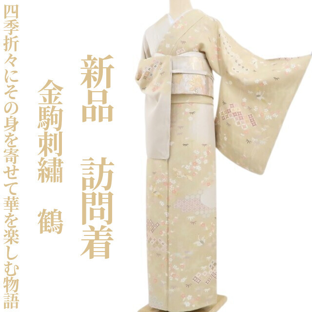 - tomihisa 新品 金駒刺繍 鶴 着物“四季折々にその身を寄せて華を楽しむ物語”正絹 仕付け糸付 訪問着 5295