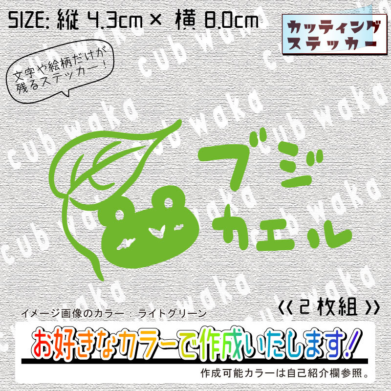 - ブジカエル⑬ステッカー2枚組 文字絵柄だけ残るカッティングステッカー・交通安全・安全祈願・車・バイク・カブ・リアガラス