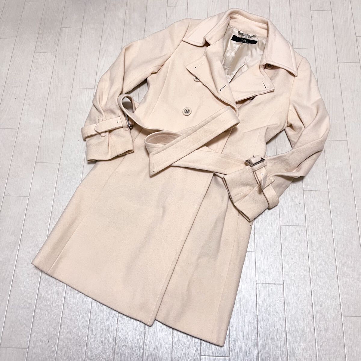 - 和655★ INED イネド チェスターコート ロングコート ダブルボタン ベルトあり 日本製 9 オフホワイト レディース