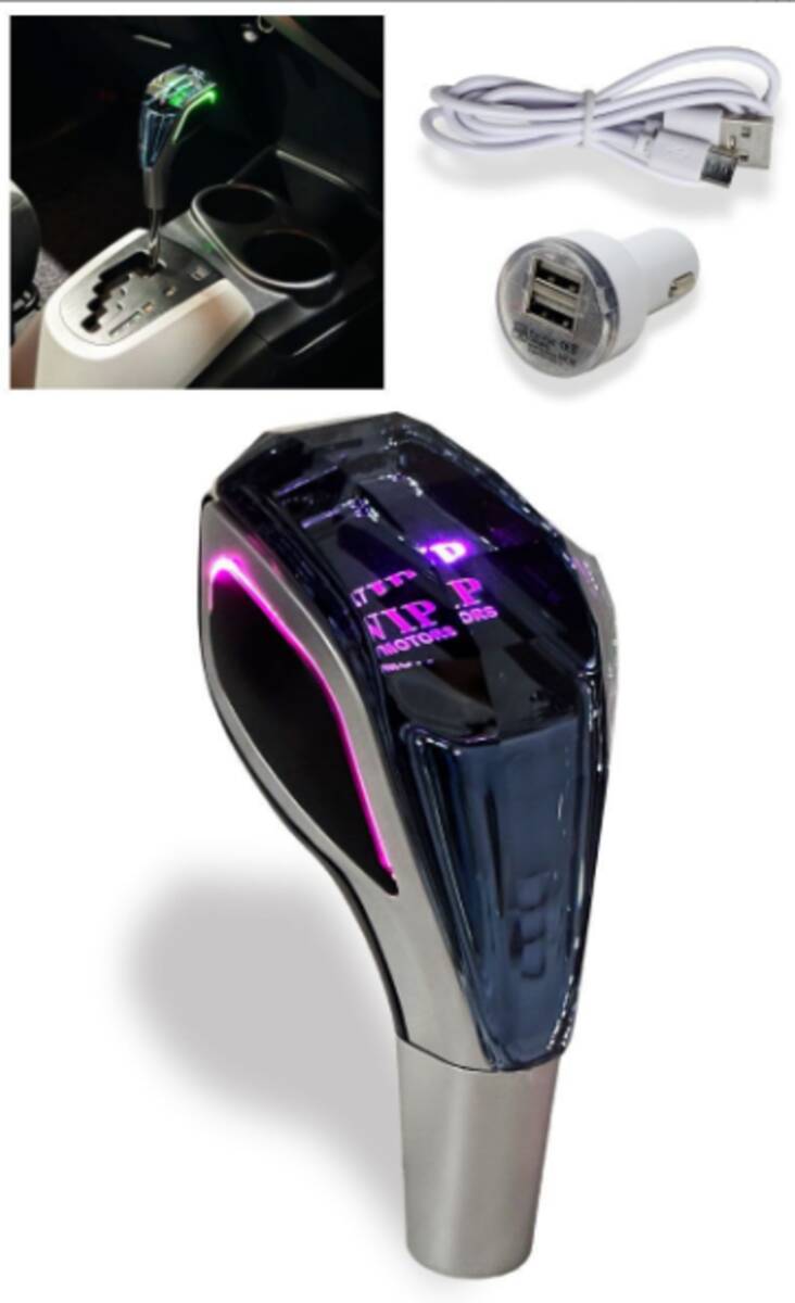 - 点灯動画あり LED 7色 クリスタル シフトノブ VIPロゴ 8mm 10mm タッチセンサーでLED点灯 社外 LED シフトノブ 光る レバー ドレスアップ2
