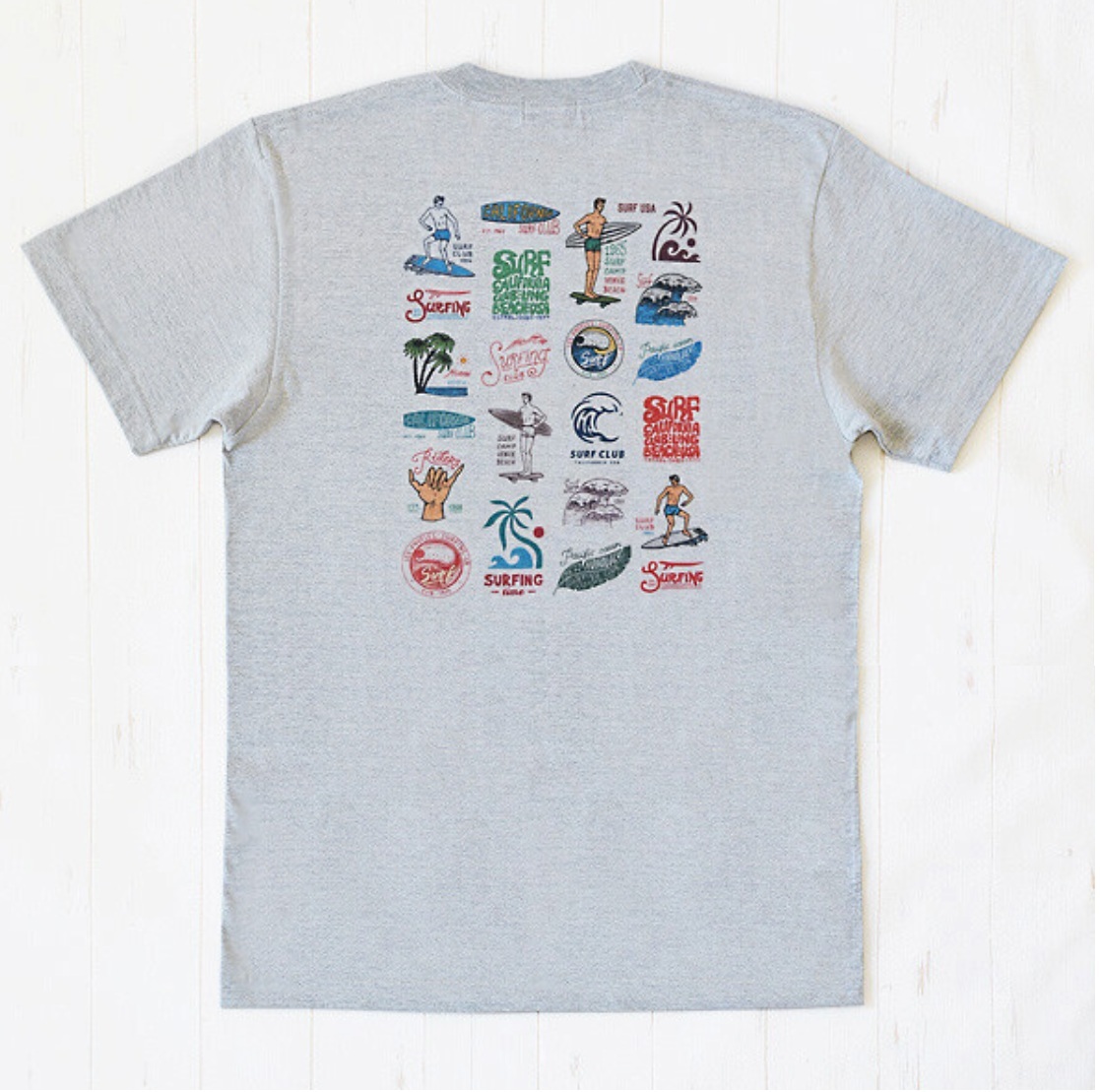 - ユニセックス・プリントTシャツ サーフUSA 杢グレー Lサイズ 新品