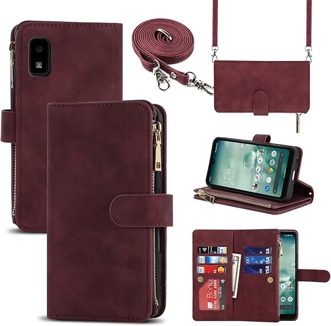 - AQUOS wish SHG06 A104SH SH-M20 手帳型 aquos wish shg06 手帳ケース 長ストラップ付き 肩掛け 革レザー 柔らかい多機能 チャック付き