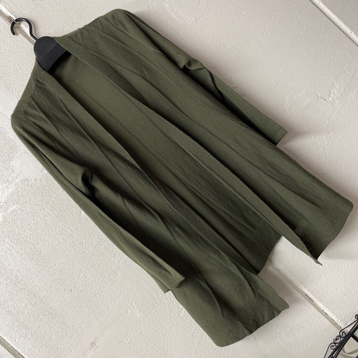 - ウール混ピンタック使いトッパーカーディガン カーキ色