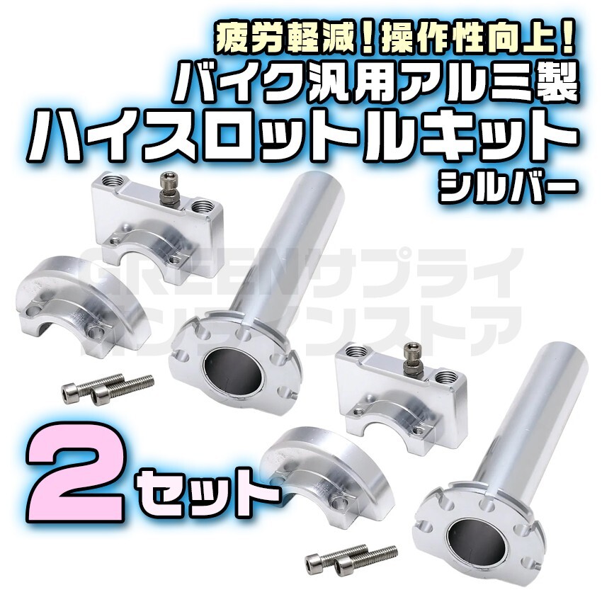 - ハイスロ キット 銀 2個 バイク ハイスロットル アクセル グリップ アルミ