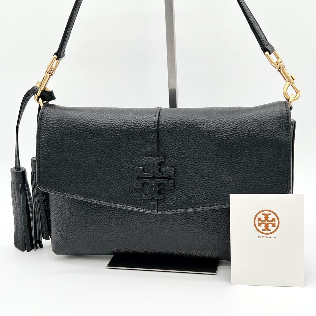 > 【極美品】Tory Burch トリーバーチ マックグロー タッセル ショルダーバッグ 斜めがけ クロスボディ レザー レディース ブラック IE000203
