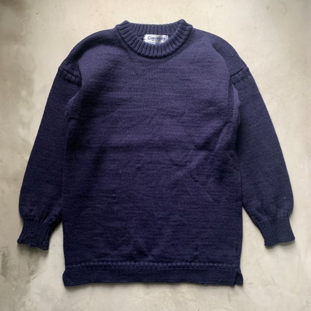 > 【S or Ladies】イギリス製 Guernsey ウールセーター ネイビー 濃紺■ビンテージ アメリカ古着 フィッシャーマン ガンジーセーター