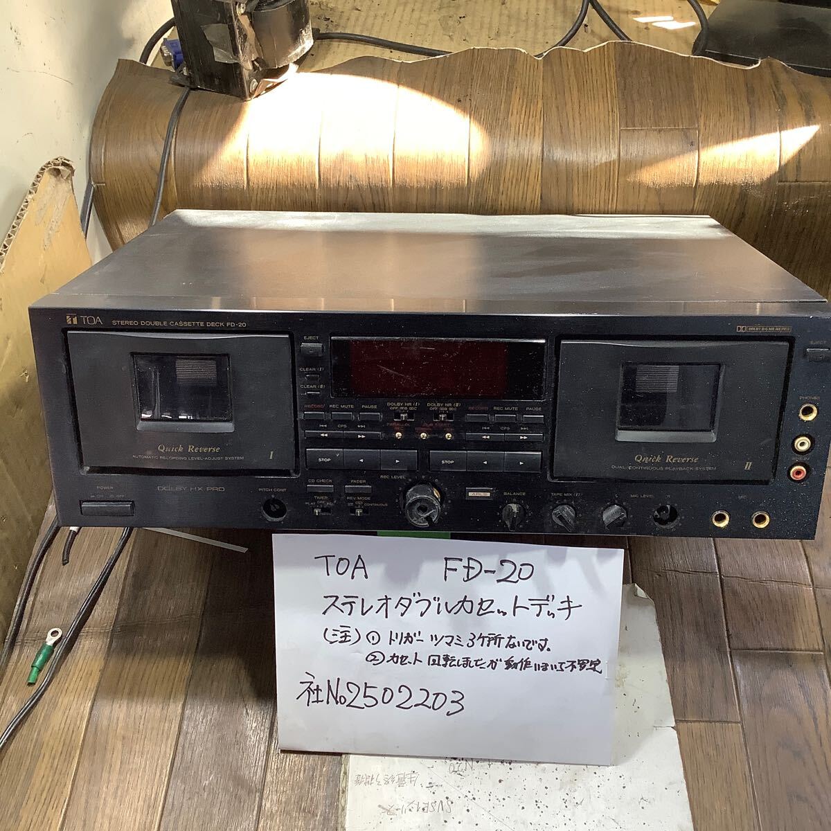 - TOA 製【FDー20】ステレオ ダブルカセットデッキ中古品一般通電まで済みです。注意)①ツマミ3箇所無い、②カセット巻取り回転動作不安定