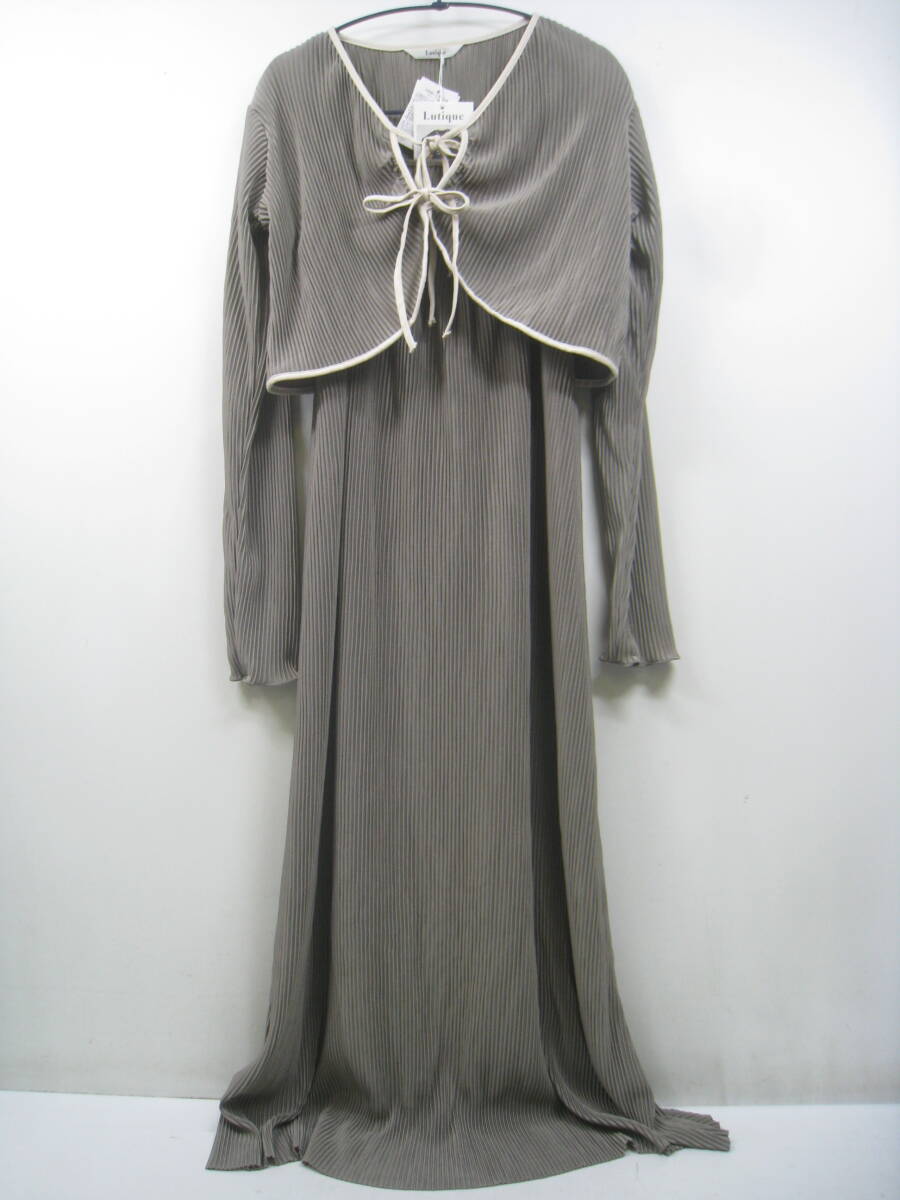 > 新品 2点セット Lutique ルティーク カーディガン×キャミワンピ ワンピース ロング プリーツ加工 373351 モカ サイズM