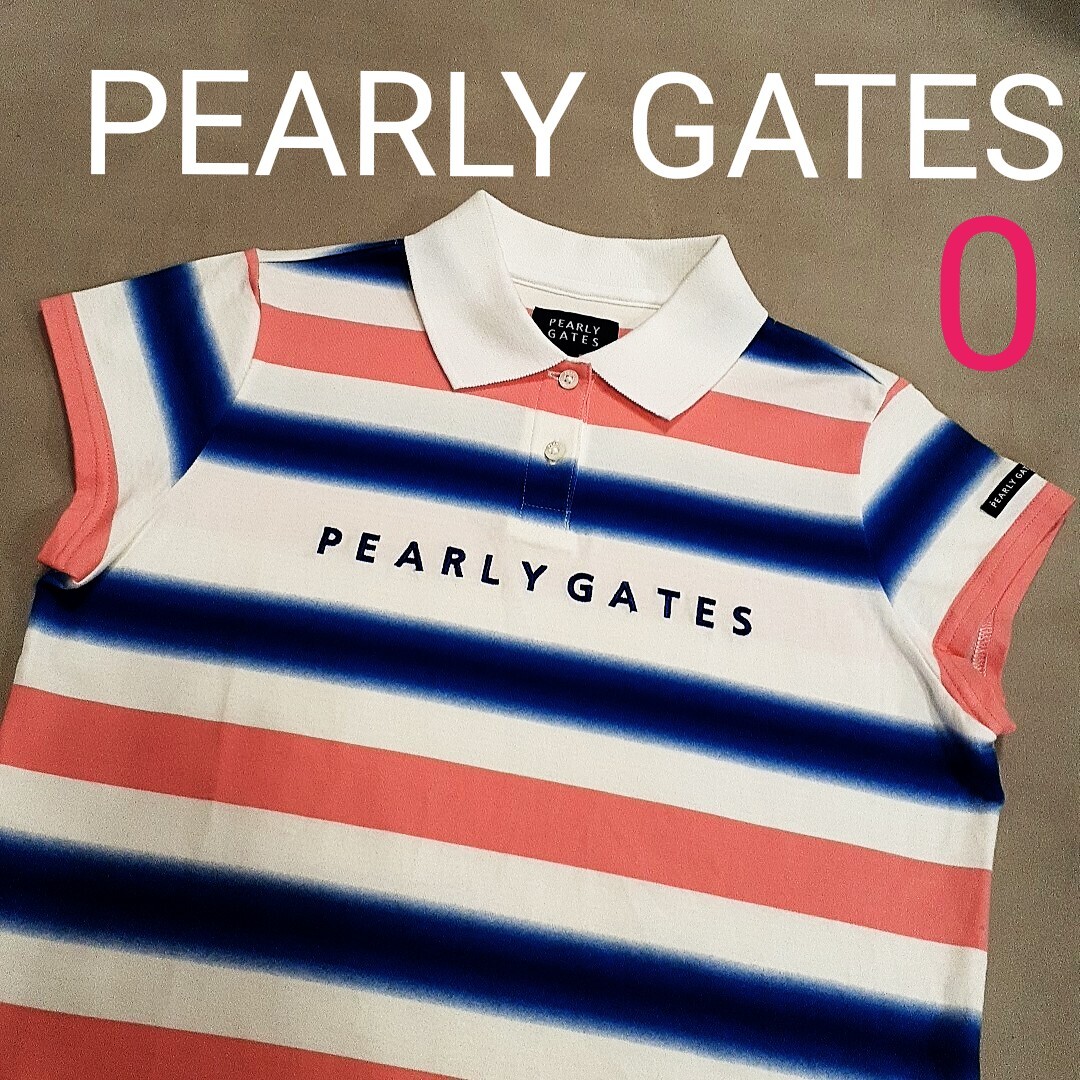 > 【超美品】PEARLY GATES パーリーゲイツ レディース0 半袖ゴルフポロシャツ ロゴ刺繍 ゴルフシャツ ゴルフウェア ストライプ
