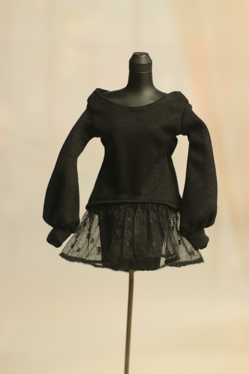 - 人形服E13-003黒い裾チュールバルーン長袖トレーナー(momokoジェニー)