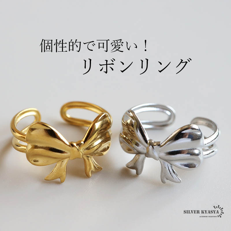 - (ゴールド) ステンレス リボンリング ノットリング 結び目 ゴールド 18K GP フリーサイズ 女性 金属アレルギー対応