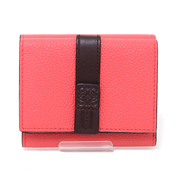 > ロエベ LOEWE トライフォールド ウォレット 三つ折り財布 コンパクトウォレット ソフトグレインカーフ C660S26X03 ピンク 【中古】S