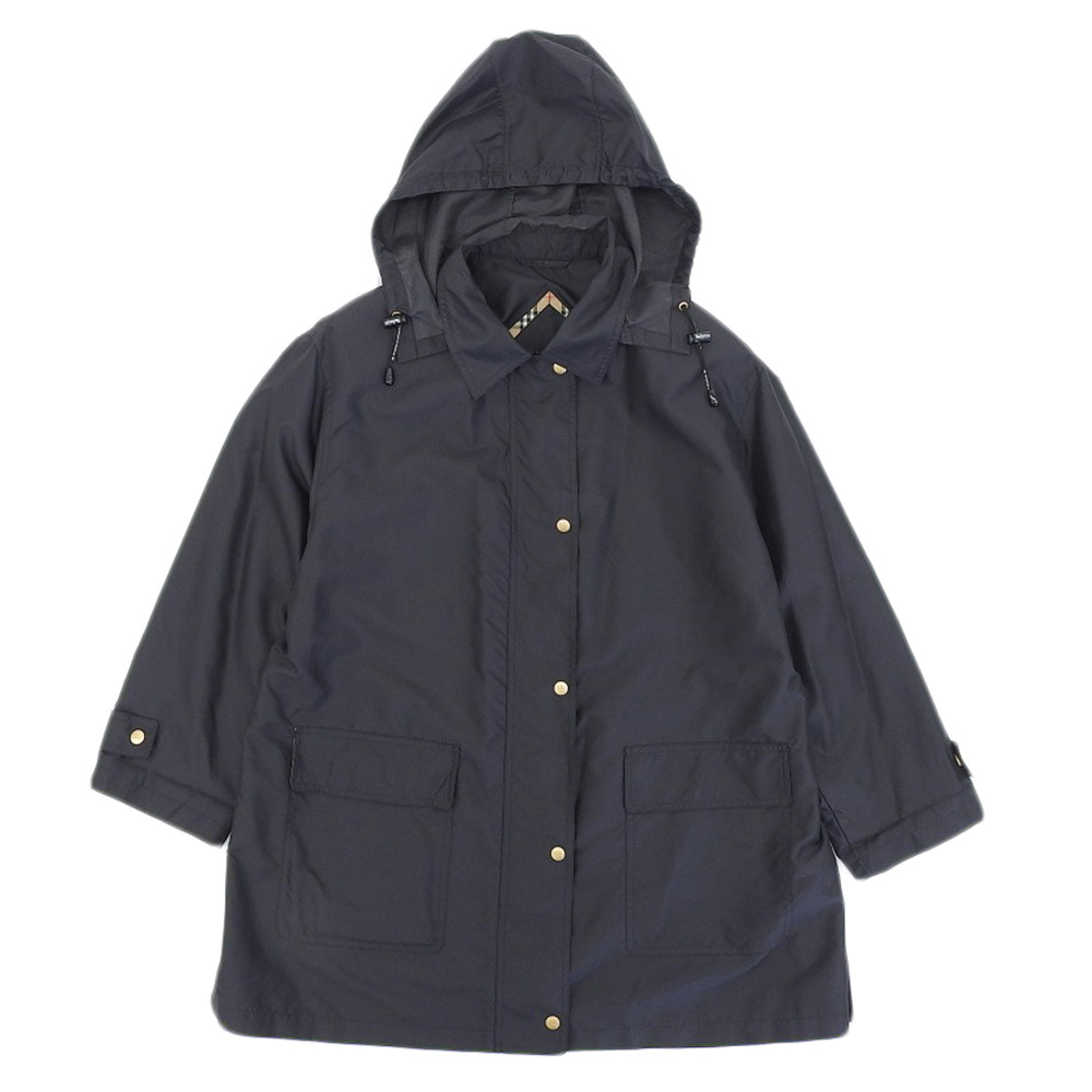 - BURBERRY バーバリー 金ボタン ノバチェック フーデットコート アウター レディース ナイロン ブラック 15ABR ヴィンテージ