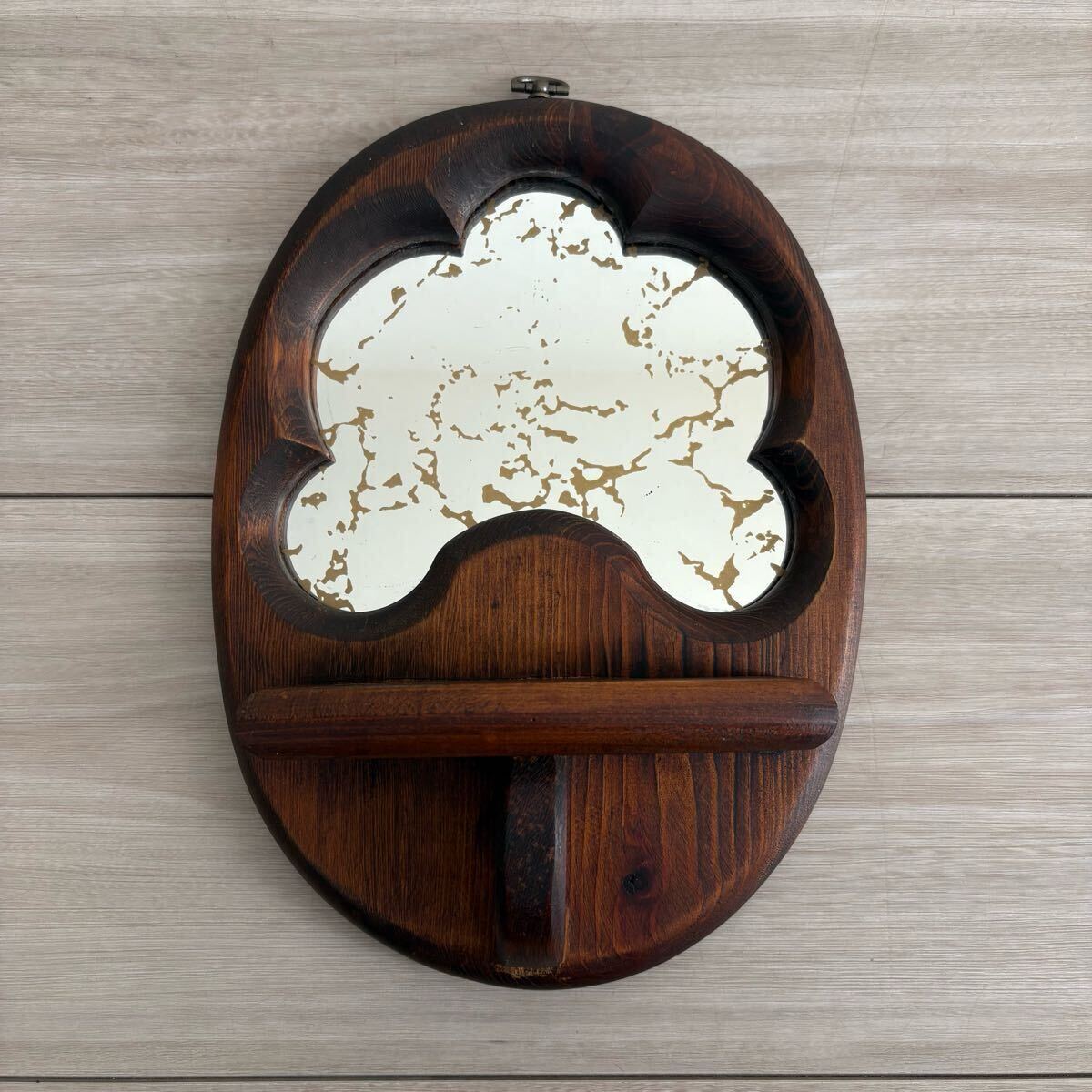 - パイン材 棚板付ウォールミラー ゴールドクラック柄