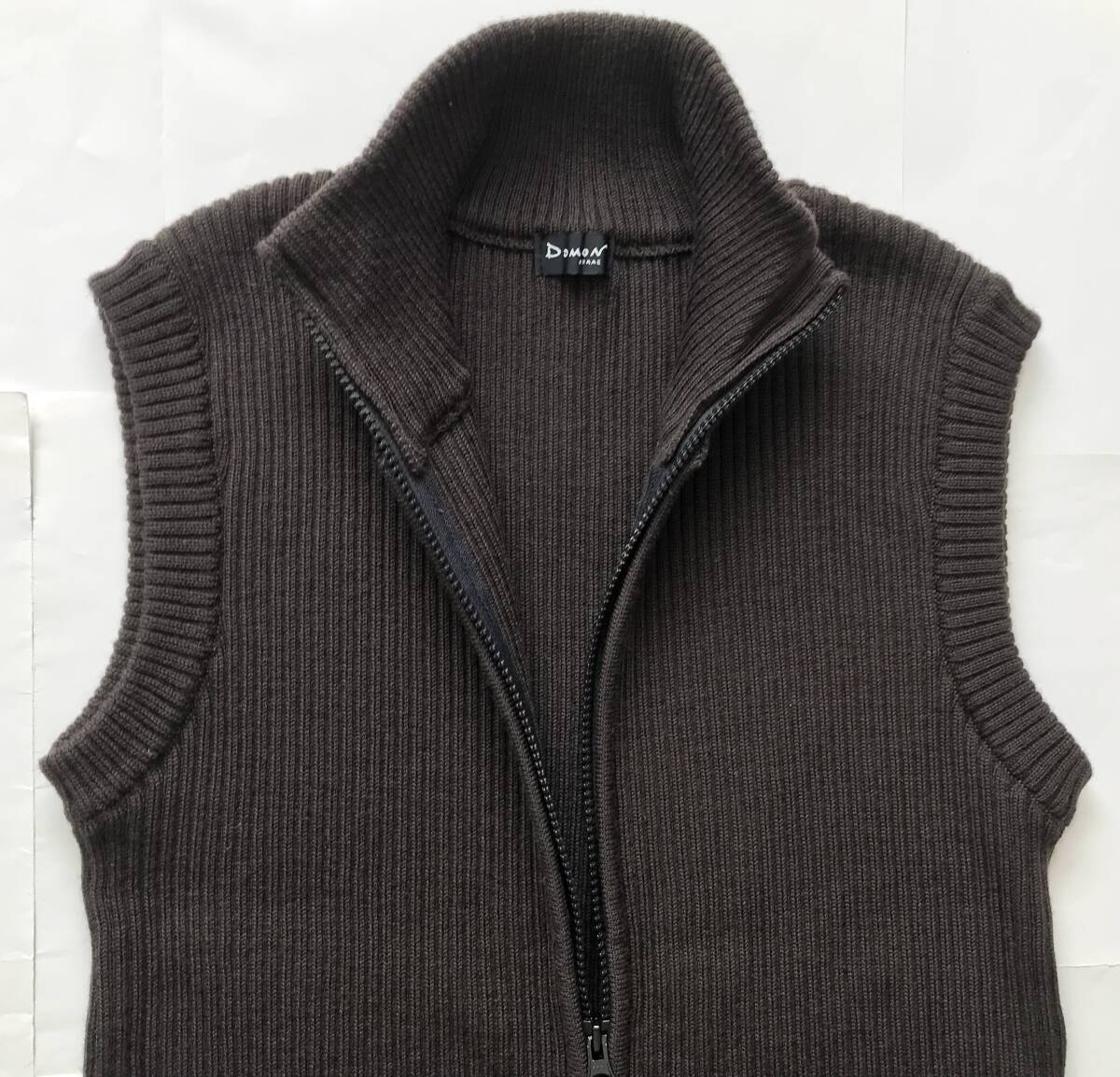 - 美品 希少ブランド★ドモンDOMON★日本製 高品質ニット★ベスト ジレ★濃茶色 ウール100%★家庭洗濯可★リブ編み ダブルジップ★着心地最高