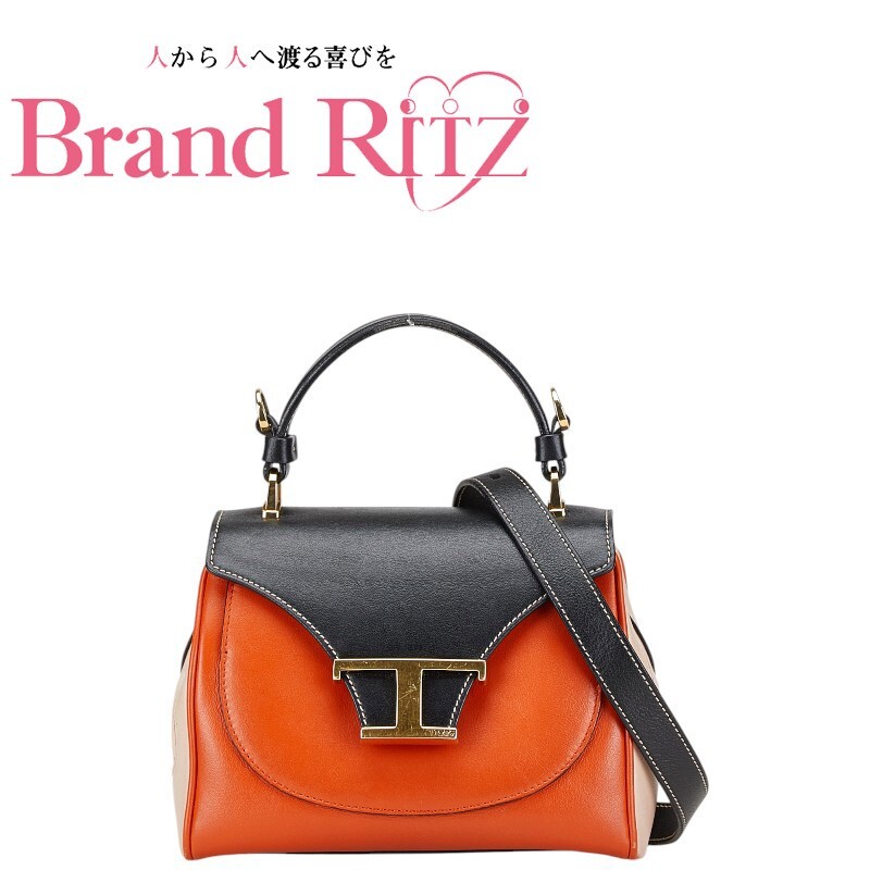 > 中古 トッズ T タイムレス ハンドバッグ ショルダーバッグ 2WAY レザー ABランク オレンジ レディース TOD’S【送料無料】【三田店】