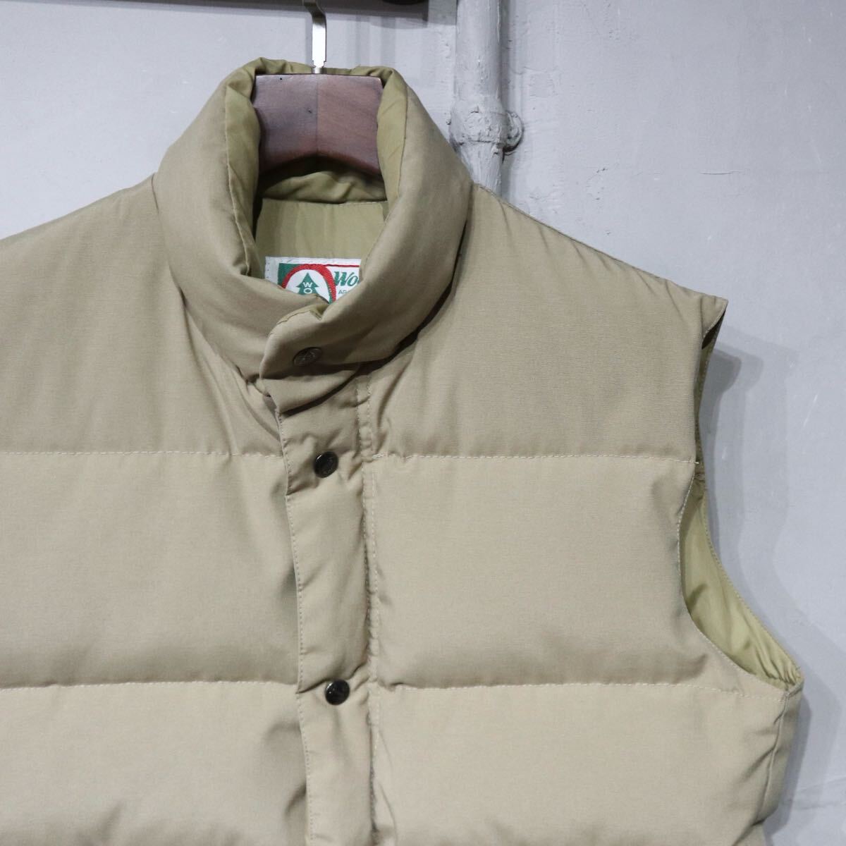 - 【即決】80s woods ウッズ ダウンベスト ベージュ オールド アウトドア 古着 カナダ製 M