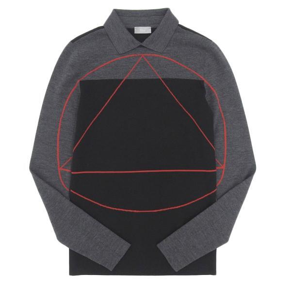 > 美品 DIOR HOMME Dior HOMME トライアングルニット セーター トップス メンズ ウール ブラック×グレー S 2013/14AW ランウェイ着