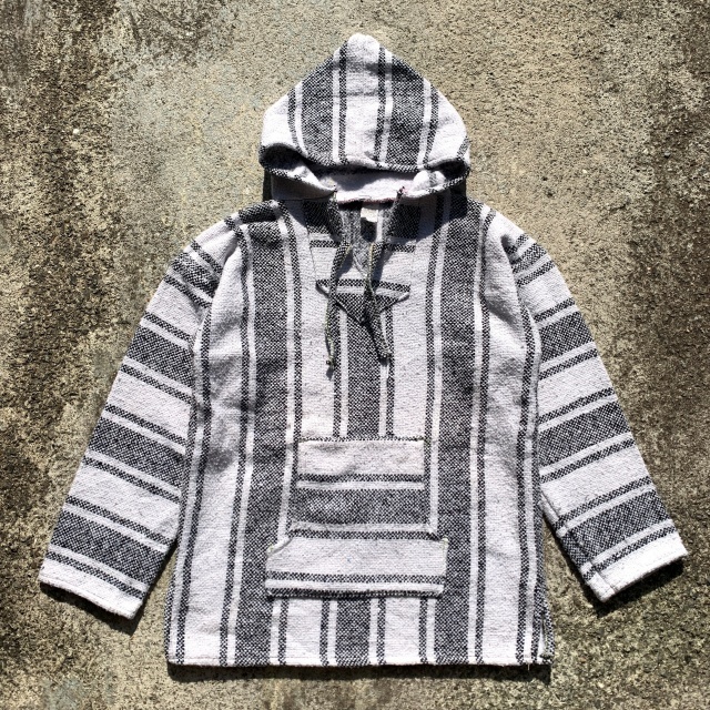 > 【M(XS相当)】メキシコ製 メキシカンパーカー ストライプ 白黒■ビンテージ オールド レトロ アメリカ古着 エスニック プルオーバー レディ