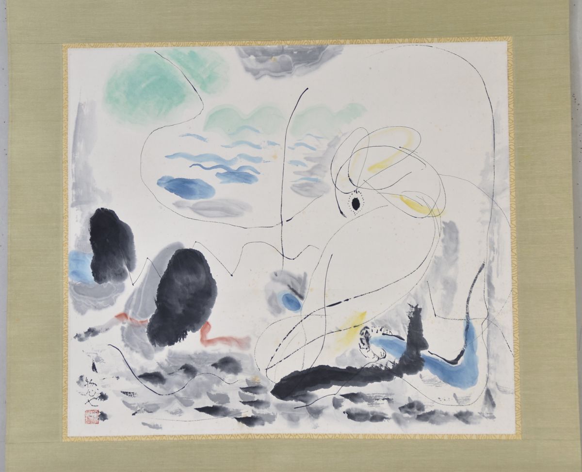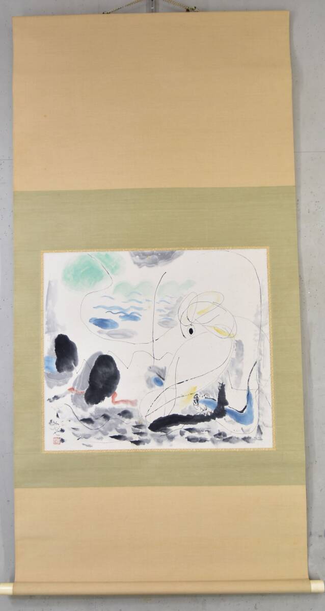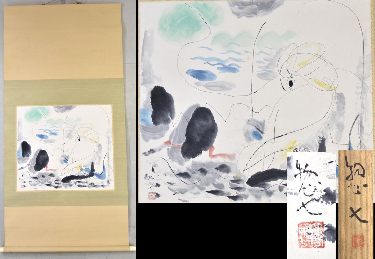 - 《真作》高間惣七「春の庭」 掛軸 日本画 紙本 彩色 洋画家 東光会創立会員 独立美術会員 帝国美術院審査員 共箱 9227-2738