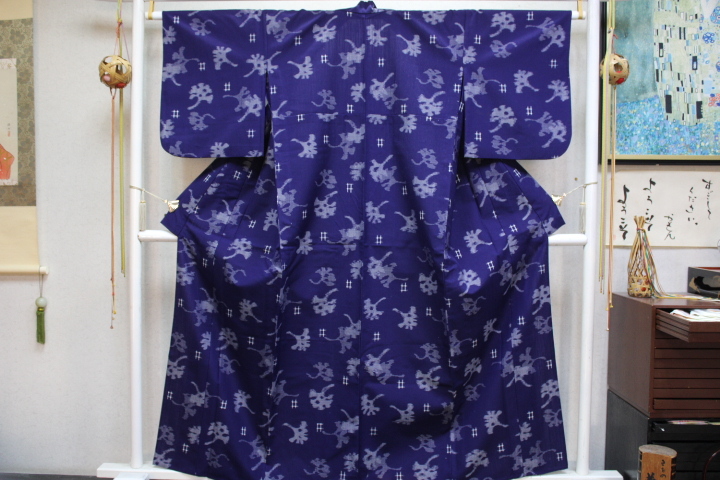 - きもの今昔8259 単衣のきもの 本絣ウールきもの 紺色地絣の綺麗な着物です 身丈159cm