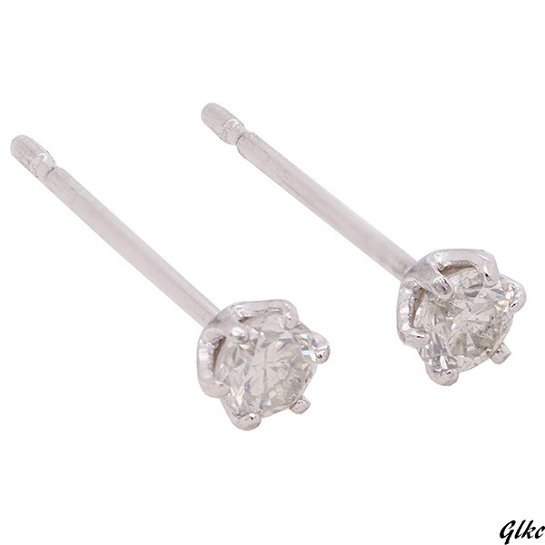 - 【ダイヤモンドの美しさを引き立てる六本爪のシンプルデザイン】スタッドピアス プラチナ900 一粒石デザイン 0.1ctダイヤモンド