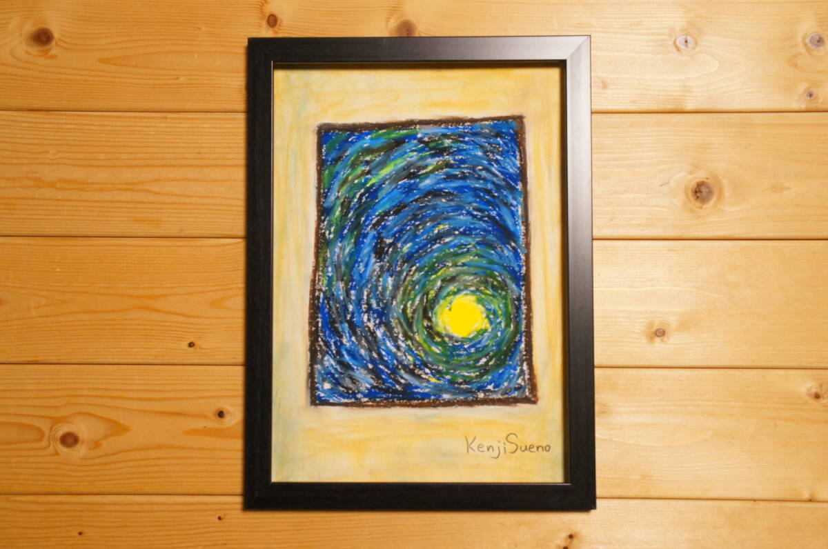> 【窓の月明かり】手描き 肉筆 クレヨン画 絵画 A4サイズ 771,Crayon painting, oil pastel painting, original art