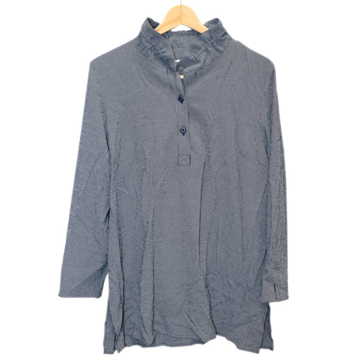 - YUMEMIDO 夢布 トップス カットソー ブラウス ちりめん 縮緬 ネイビー×ホワイト LLサイズ 肩幅39cm NT 美品 ABランク