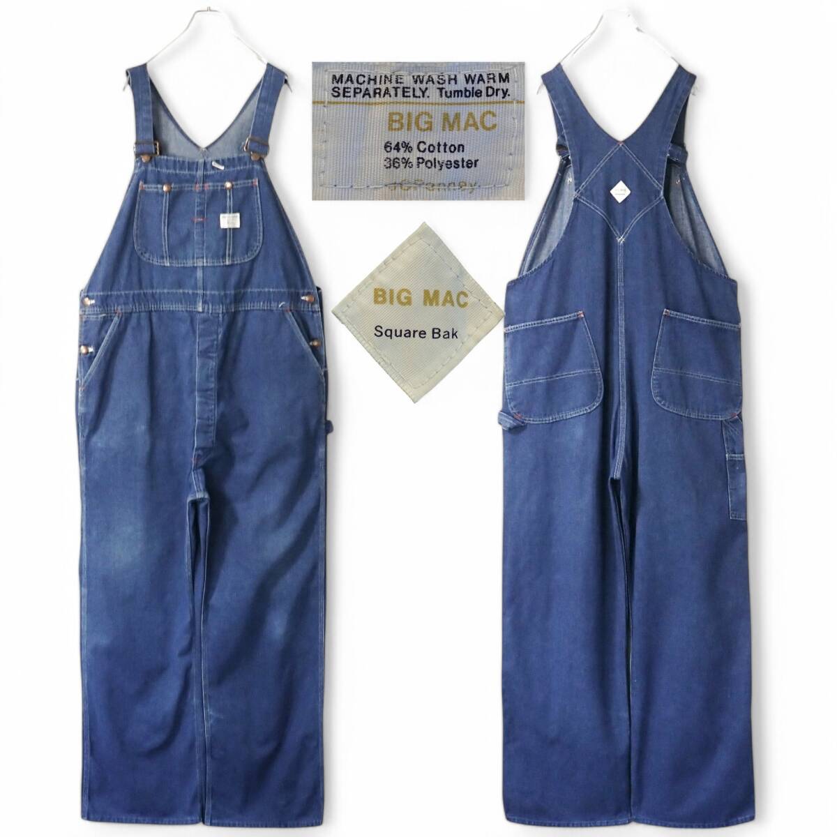 - 6430/BIG MAC JCpenney 70sビンテージ オーバーオール(W115cm)ボタンフライ デニム カバーオールワークパンツ サロペット ビックマック古着