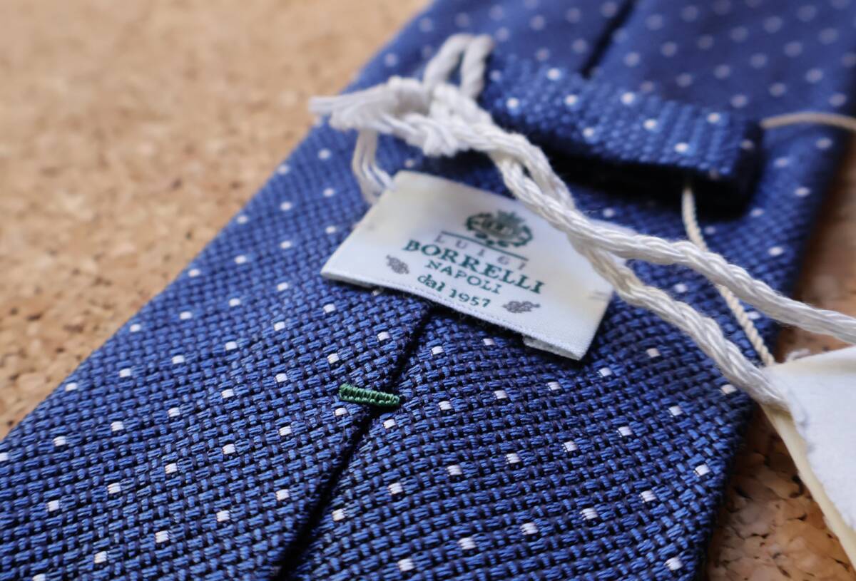 - 未使用 ナポリ名門 LUIGI BORRELLI ボレッリ Royal Collection 価格26,400円 シルク フレスコ ピンドット柄 スフォデラート ディープブルー