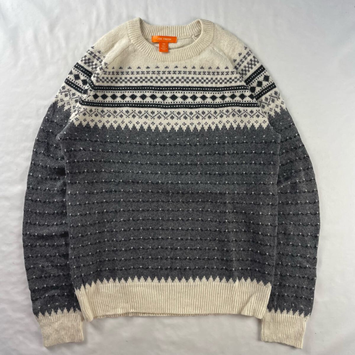 - US Vintage JOE FRESH ラグラン フェアアイル バーズアイ 幾何学模様 アート エスニック 民族 デザインニット