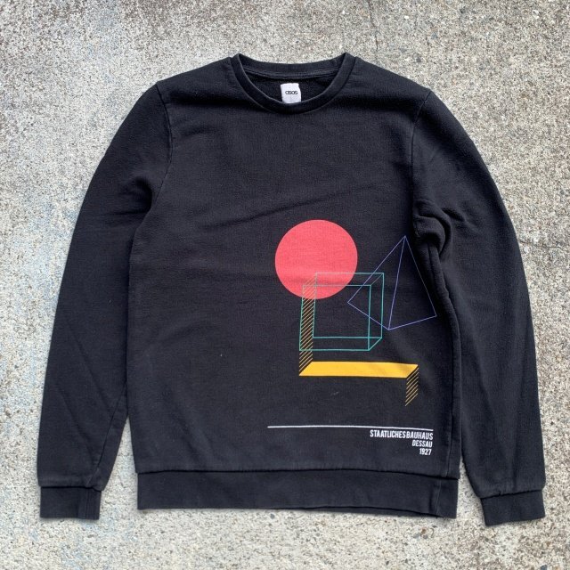 - 【XS or Ladies】asos BAUHAUS バウハウス プリントスウェット ブラック 黒■イギリス古着 ドイツ デッサウ 建築 アート
