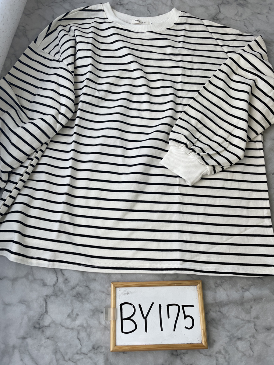 > カットソー ボーダー柄 長袖 トップス プルオーバー トレーナー ゆったり 着痩せ ロンtながそで ビックシルエット sizeM ※プリント不良