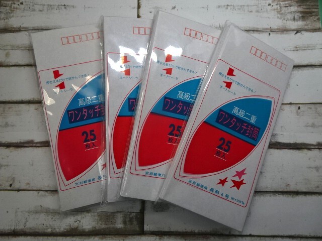 - ●高級二重ワンタッチ封筒 長形4号 25枚入り×4 未使用保管品 K6206