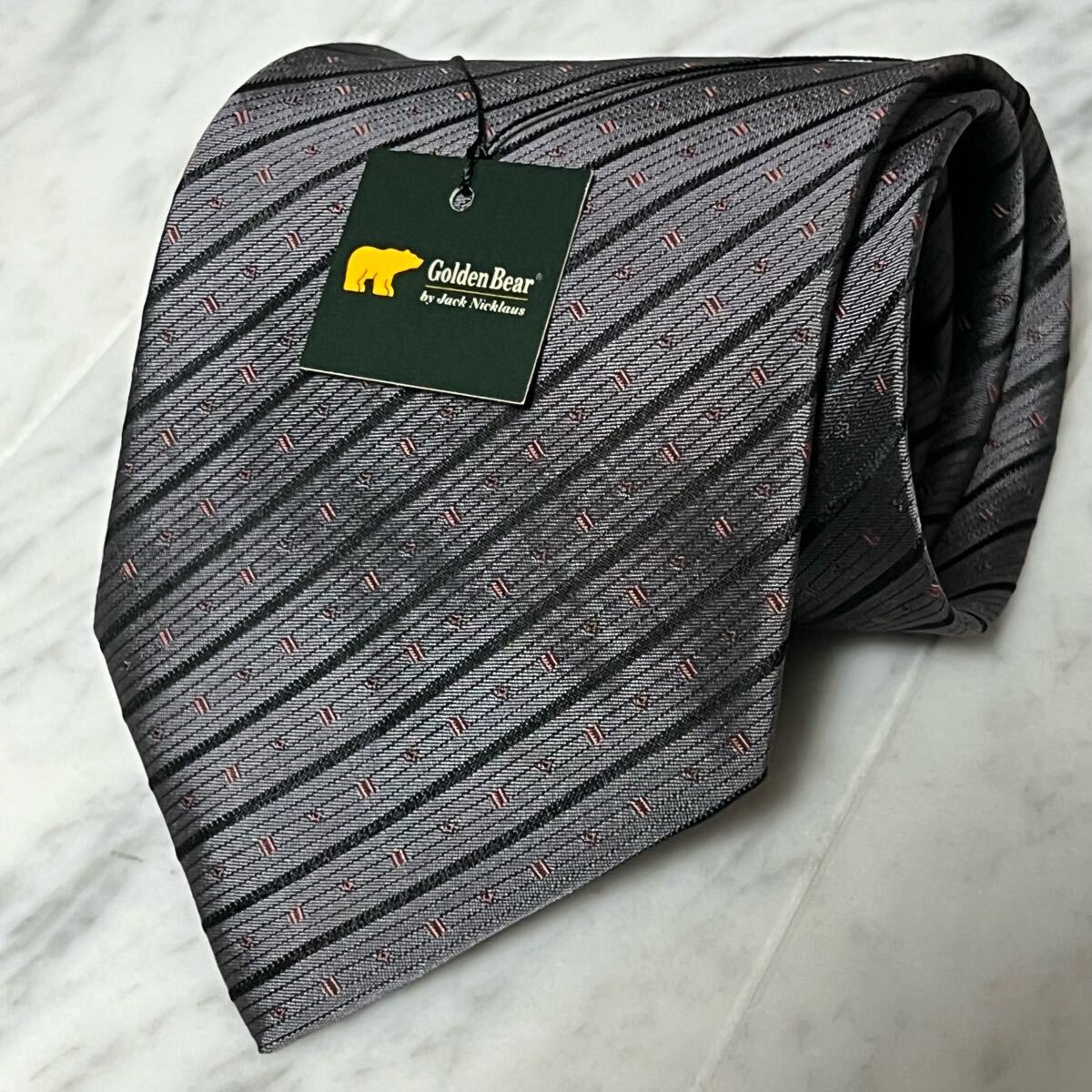 - 【美品】 999円~ golden bear ネクタイ ストライプ グレー ブラック (GB6)