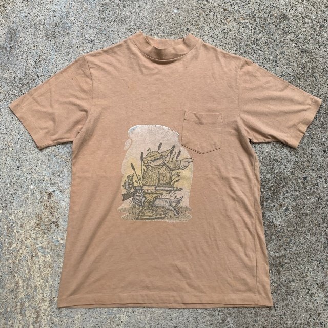 > 【M】High Clear アイロンプリント ポケットTシャツ ベージュ■ビンテージ オールド レトロ アメリカ古着 シングルステッチ 70s-80s