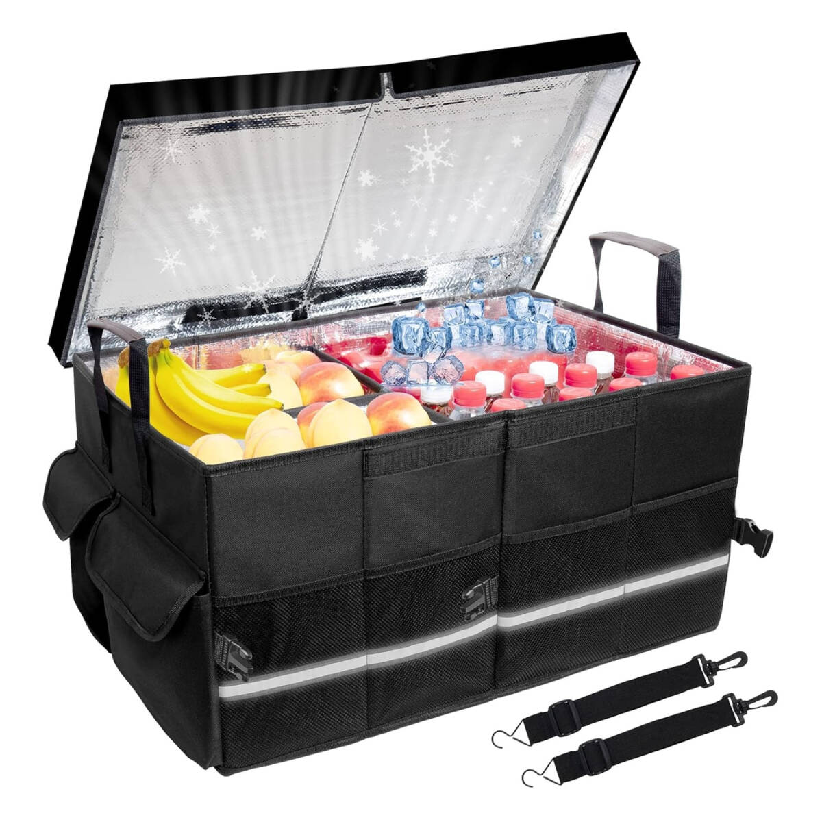- 車載用収納ボックス ダークブラック 折りたたみ式 保冷バッグ 72L 大容量 保温バッグ ハンドル付き 旅行 防水 蓋つき