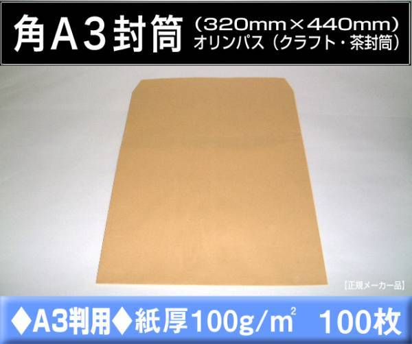 - 角形A3号封筒《紙厚100g/m2 32×44 クラフト 茶封筒 オリンパス 角A3》100枚 A3サイズ対応 大型封筒 キングコーポレーション