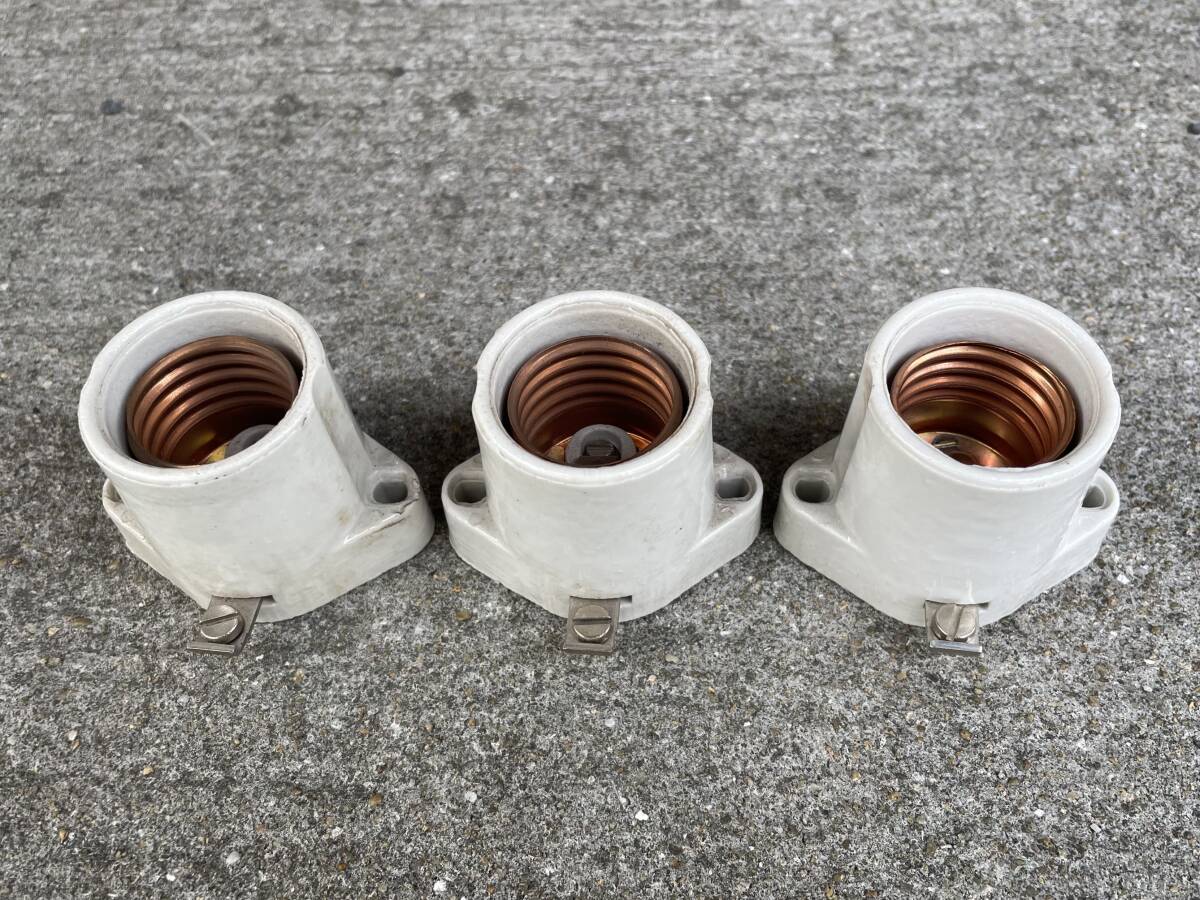 - 3個セット!Te3-1. フランス アンティーク 陶器 壁付け ソケット ランプ 磁器 真鍮 北欧 カフェ 吊り下げ アトリエ 古民家 カフェ